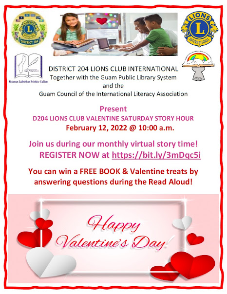 Biba Anu Nuebu (Happy New Year)! This morning we were delighted to hear two captivating stories from young local authors who shared their love of reading. The January 15, 2022 meeting started out with dazzling Disney music prior to the start of the first Read Aloud conducted by Meravelle Duran who read her book titled Petmisu. The second Read Aloud was conducted by Ezarrah Blas who read her book titled Kiko, Ana, and the Fire Breathing Dragons. Both books have a local touch that the people of Guam can connect with. You'll have to buy the books to read all about it! Wonderful prizes of calendars, gift certificates, books written by today's featured authors, etc. were also given away to many of our members who joined us during this special literacy event. Enjoy the following snapshots, and we'll see you at our Read-A-Thon Kickoff on February 19, 2022!